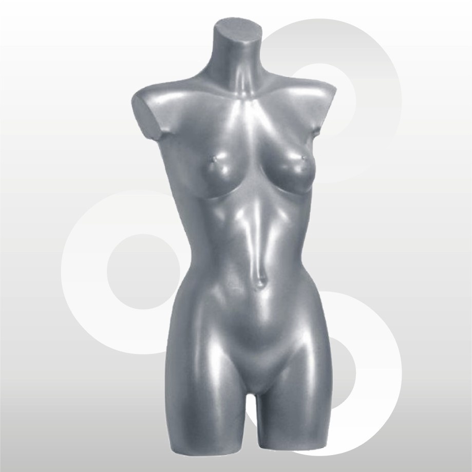 Damestorso kunststof zilvergrijsHoogte Torso: 83 cmBorst omtrek: 86 cmTaille omtrek: 60 cmHeup omtrek: 90 cm