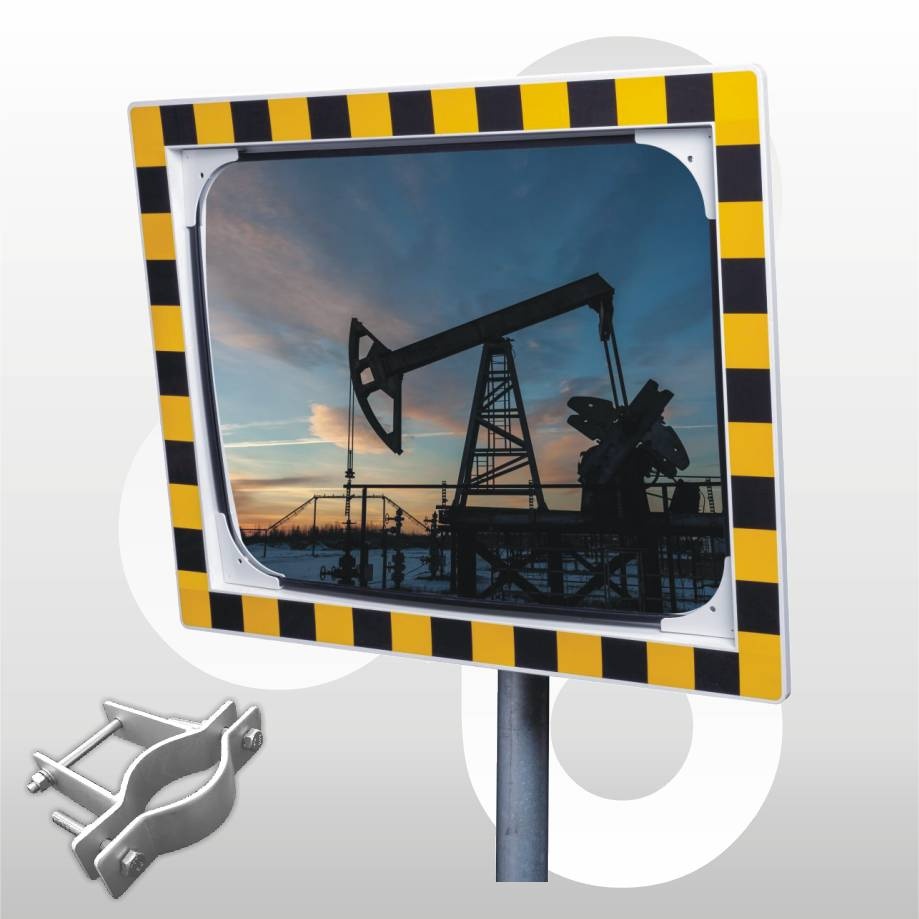 Industriespiegel van helder acryl, zonder vervorming! Biedt optimaal en veilig zicht in het verkeer, op industrieterreinen, parkings, uitritten enz. Specificaties: - Spiegel 60x80 cm - Helder slagvast acryl - Slagvast PP frame met reflecterende geel/zwart 3M folie - Incl. bevestigingsbeugel 48-90 mm - Gebruikersafstand 0 - 20 m