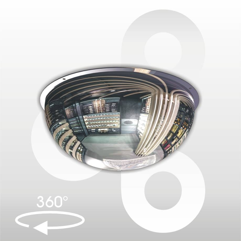 Bolvormige panorama spiegel van helder acryl voor wand- of plafondmontage. Biedt optimaal overzicht in winkels, werkplaatsen, garages, magazijnen, ziekenhuizen, op- en uitritten, parkeerplaatsen enz. Werkt uiterst effectief ter voorkoming van winkeldiefstal, bij toezicht op machines en verkeer of als bewakingsspiegel. Specificaties: - Ø60 cm voor in 360° hoek - helder acryl, superscherp beeld - laag gewicht, slagvast - excl. bevestigingsmateriaal - gebruikersafstand 0 - 15 meter