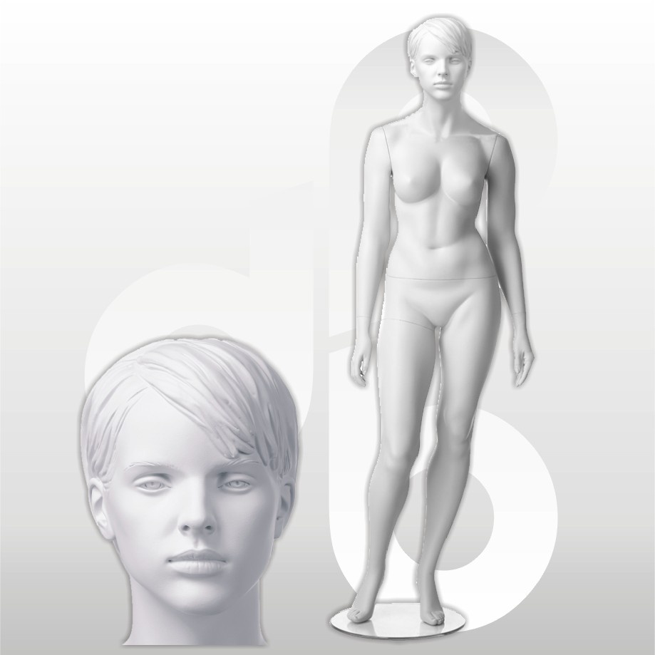 Model Venus-L-1 witH187cm, Borst 89cm, Taille 67cm, Heup 102cm, Confektie-maat 40-42, Schoenmaat 38, inclusief veiligheidsglas voetplaat met voet- en kuit-pen