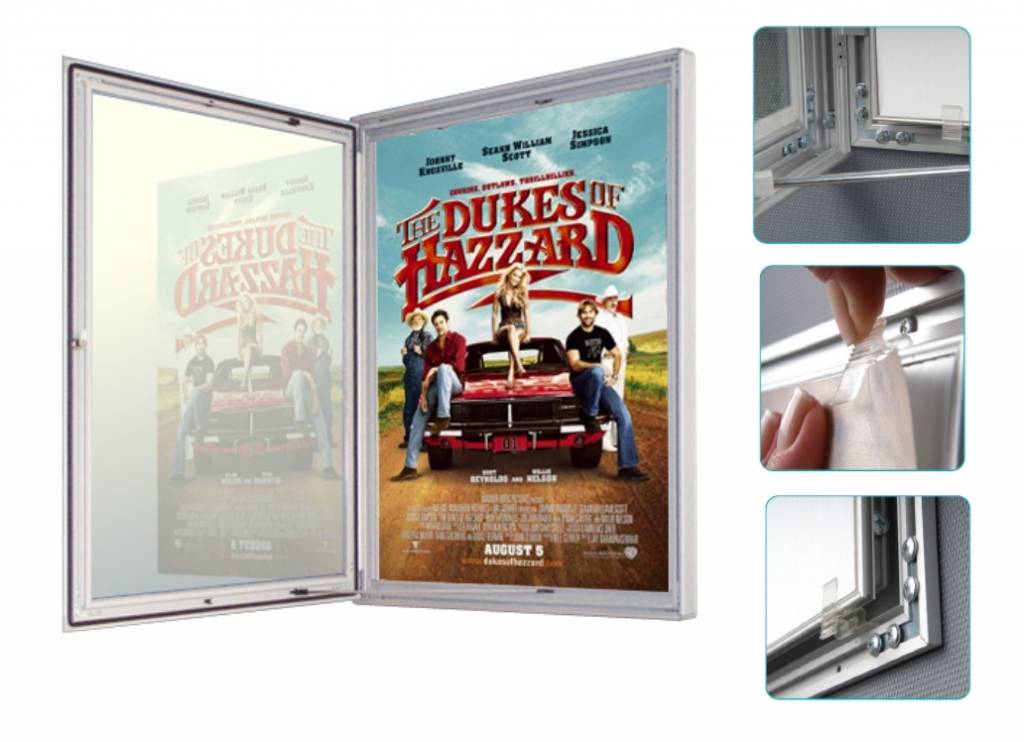 Showbord A-4 210 x 297 mm. 100% waterdicht voor zien van slot met sleutel. Profielbreedte 45 mm en de kastdikte 30 mm. De deur valt in het profiel. Geschikt voor posters