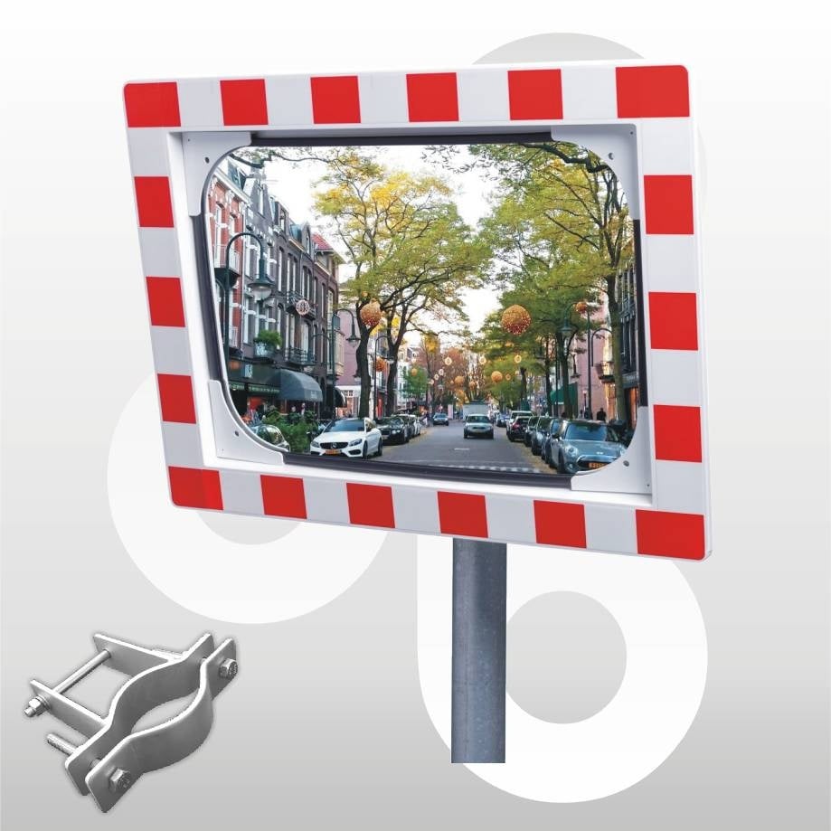 Verkeersspiegel voor veilig weggebruik, zonder vervorming! Biedt optimaal en veilig zicht in het verkeer, op industrieterreinen, parkings, uitritten enz. Specificaties: - Spiegel 40x60 cm - Helder slagvast acryl - Slagvast PP frame met reflecterende rood/wit 3M folie - Incl. bevestigingsbeugel 48-90 mm - Gebruikersafstand 0 - 15 m